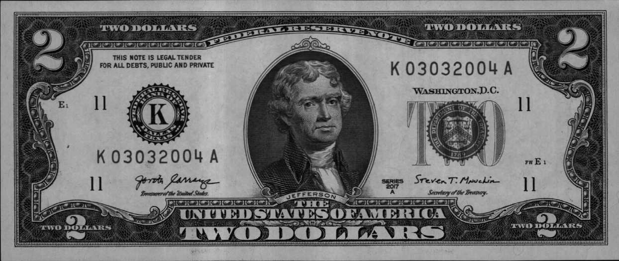 This collectible $2 bill with serial number K03032004A corresponds to the date 03/03/2004 (US). A date note is a rare and highly sought-after collectible. Perfect for special occasions.