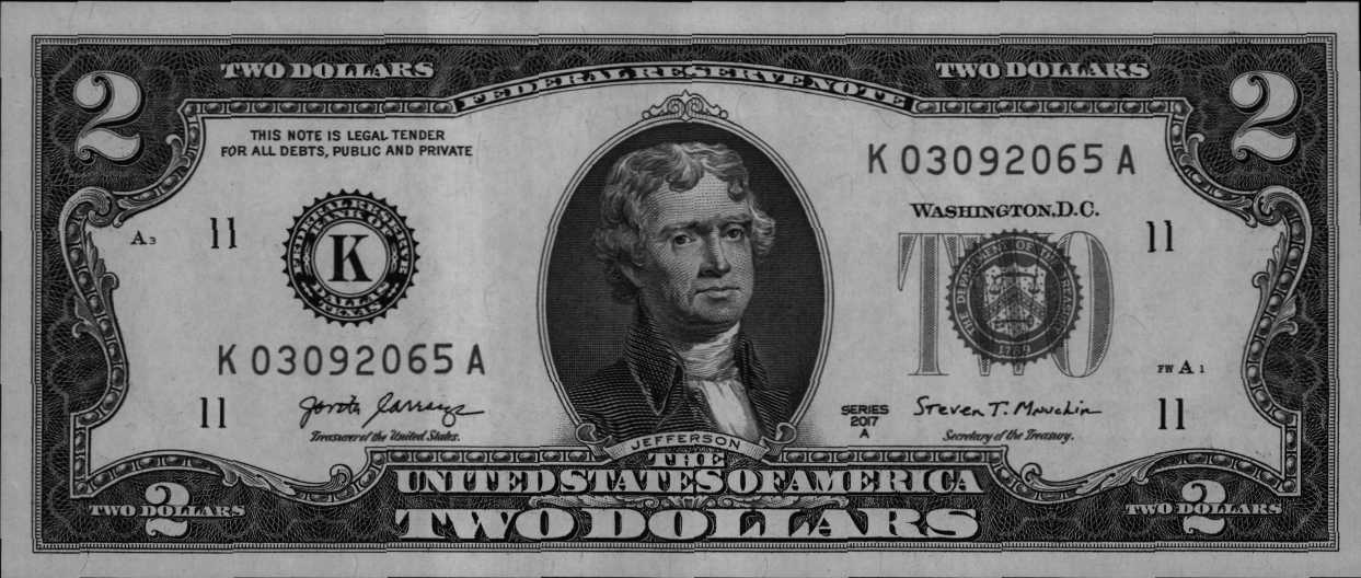 This collectible $2 bill with serial number K03092065A corresponds to the date 03/09/2065 (US). A date note is a rare and highly sought-after collectible. Perfect for special occasions.