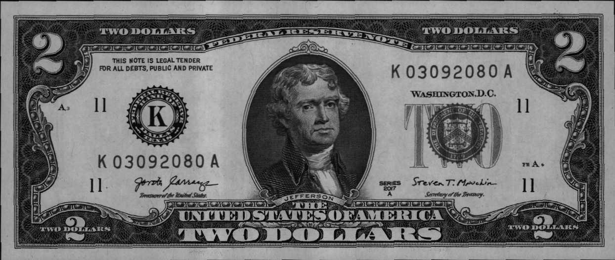 This collectible $2 bill with serial number K03092080A corresponds to the date 03/09/2080 (US). A date note is a rare and highly sought-after collectible. Perfect for special occasions.