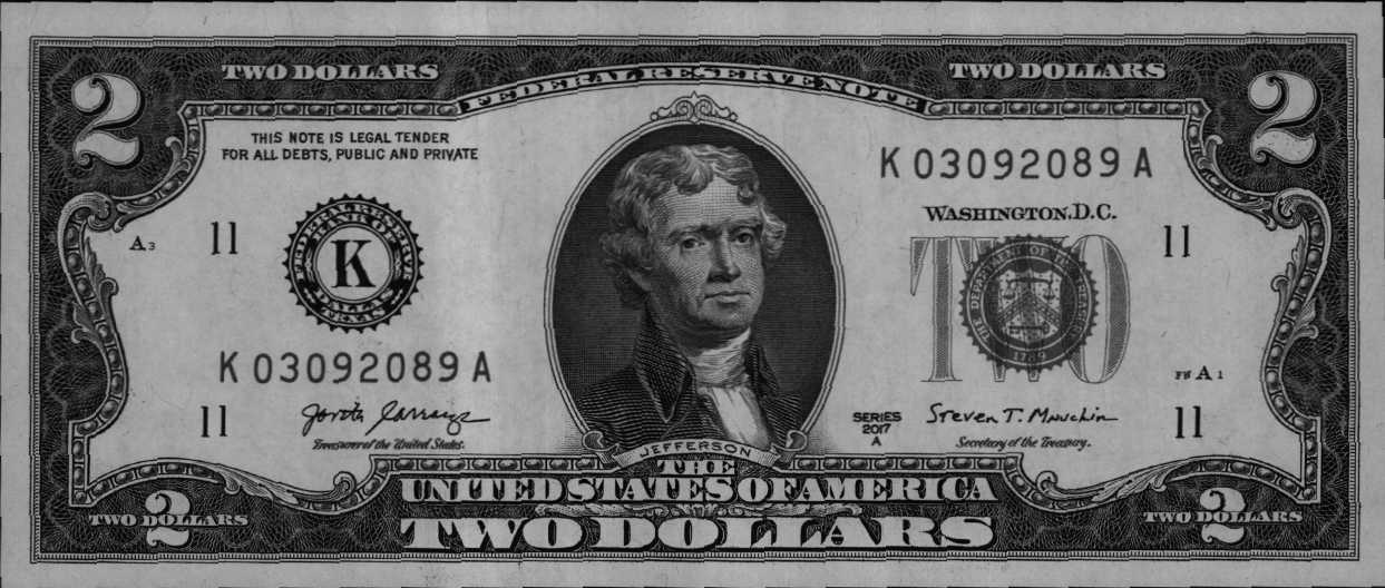 This collectible $2 bill with serial number K03092089A corresponds to the date 03/09/2089 (US). A date note is a rare and highly sought-after collectible. Perfect for special occasions.